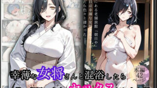 【作品説明】山奥にある老舗旅館「朝日や」この旅館に今日から働くことになった湊斗が訪れ、女将のさえこが迎え入れる。湊斗の女将さんに対する印象は美人だけど、、、幸が薄そうな大人の女性w促されるまま、旅館の温泉に入り疲れを癒している湊斗そこへ女将さんが入ってくる焦る湊斗に対して、冷静に引き留める女将さん混浴とのことだが女将さんのタオル越しに見える乳首と陰毛にフル勃起するこれも旅館の魅力と湊斗の大きくなった「それ」を深くまで咥えてフェラをするあまりに女将さんの口まんこが気持ちよく、あっけなく射精…部屋に戻って、温泉でのフェラを思い出しニヤニヤするも明日からの仕事のことを考えて眠りにつく湊斗寝静まったころ、襖が開き女将さんが部屋へ入ってくる…唇に感じる柔らかい感触に目を開けると、そこに女将さんのパンツ越しに湿ったエロまんこが…【登場人物】・篠原 湊斗 (しのはら みなと)・朝日奈 さえこ (あさひな さえこ)【収録内容】・漫画 44P・CG集 240P※女将さんのプライベートセックスをCG集にまとめました。【収録内容】黒髪、ロングヘア、巨乳、爆乳、人妻、美魔女、お〇んこ、くぱぁ、混浴、前戯、フェラ、手コキ、挿入、膣出し、中出し、正常位、バック、アへ顔、着物※サンプルのモザイクは濃くしてありますが本編はサンプルほど濃くありません※StableDiffusionで画像を生成しその後加筆修正や人力の画像修正、その他細かい調整を行い製作しています※登場人物はすべて25歳以上の成人です※AI生成作品のため一部細かい描写に破綻や不自然さが含まれる場合がございます※あくまでもパロディ作品としてお楽しみ下さい。